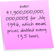Prices doubling every 13.5 hours is SCARY. The first thing I wondered about was how much food to stock asap!